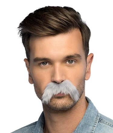 Snor - grijsDeze grijze snor heeft een zelfklevende plakstrip. Voor langdurig gebruik is het beter om Mastix (huidlijm) te gebruiken.